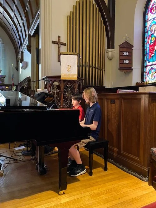 Nicky & Thomas playing the piano at the 2022 Spring Recital.