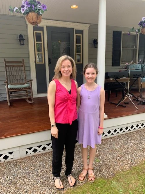 Amanda and piano student Mollie at the 3pm 2021 Spring Piano Recital during the CoVid Pandemic.